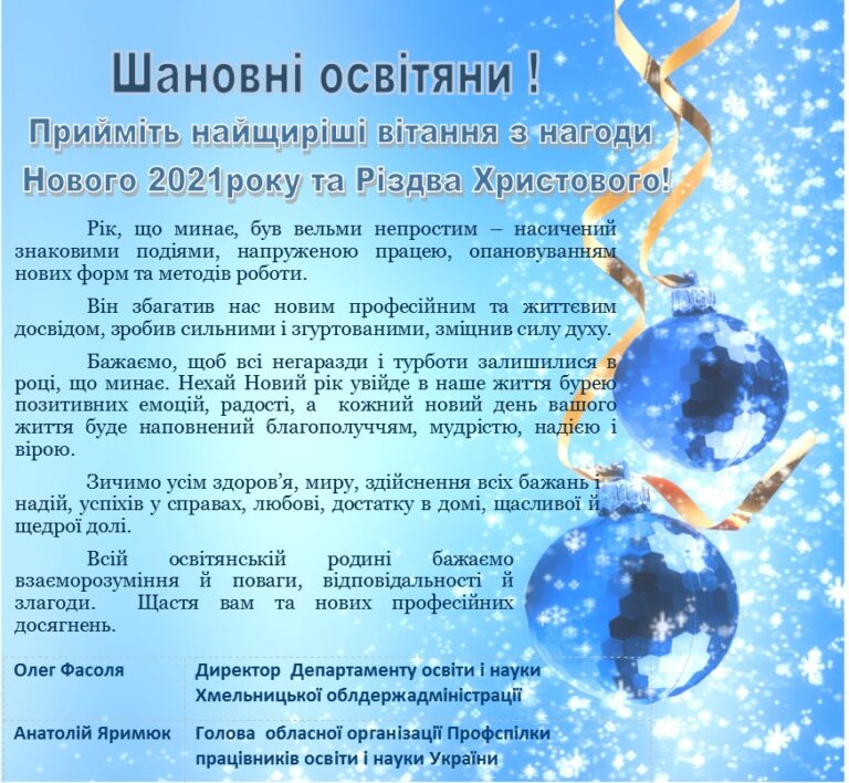 Вітання з нагоди Нового 2021 року та Різдва Христового!